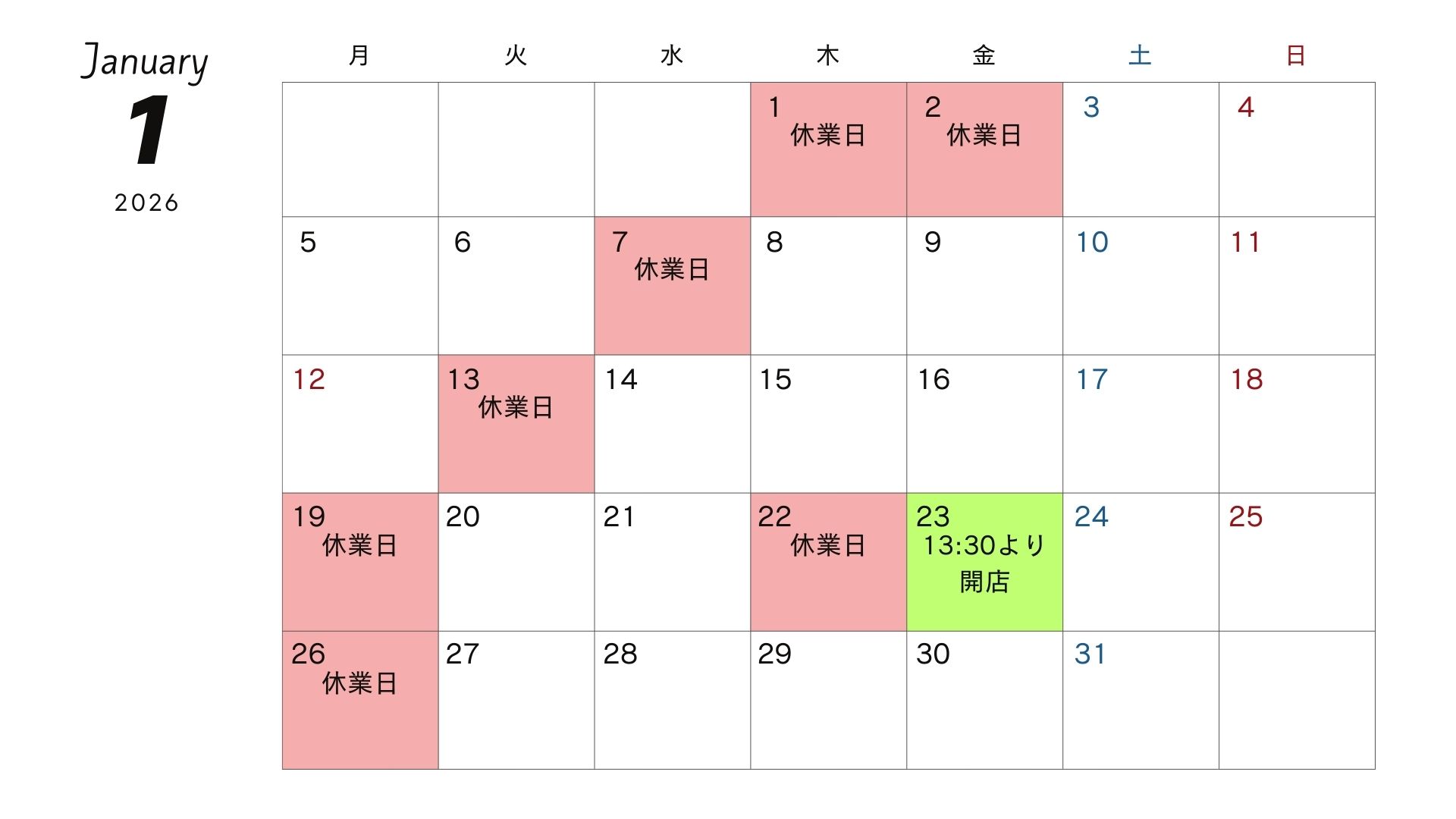 2025年12月9日 2026年1月/2025年12月の営業予定日